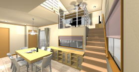 ダイニングとリビングはスキップフロアになっていますが、吹抜等を有効に配置する事で